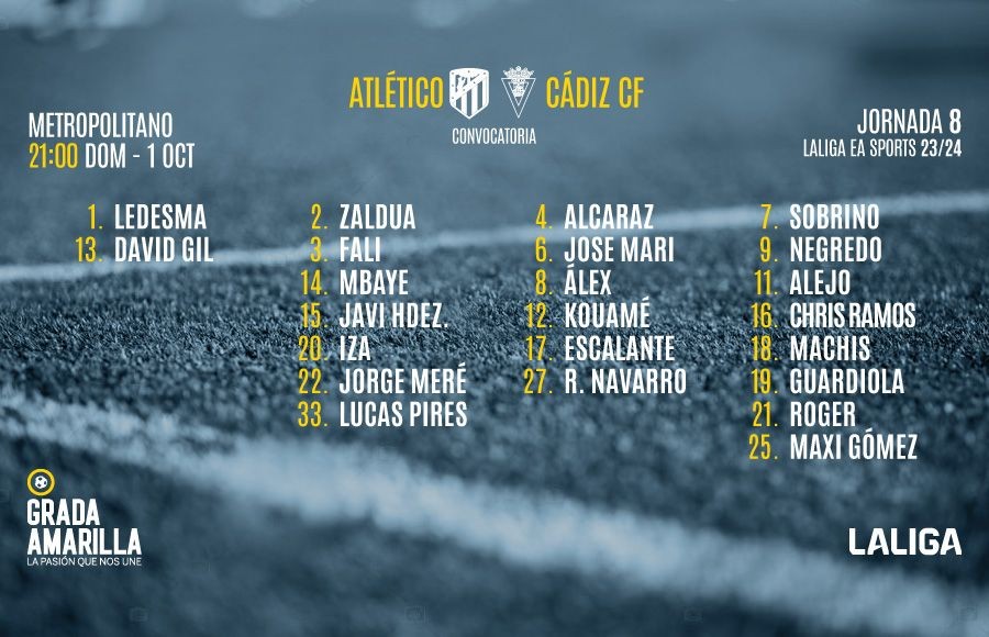 ???? Los convocados por @Simeone para el duelo ante el Cádiz. pic.twitter.com/QSmoftQHyh